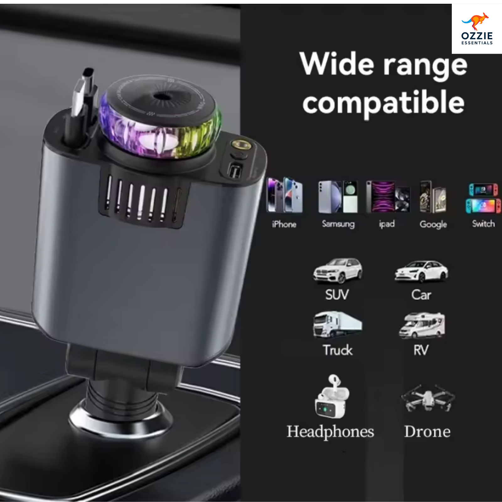 π« Charge faster, breathe fresher, and cruise in style β all with one smart car charger!